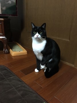 白黒ハチワレ。