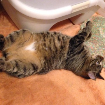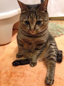 キジトラ、黒濃い、腹の毛白い、尾は短い