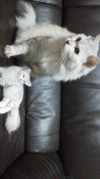 長毛で薄い茶とグレー