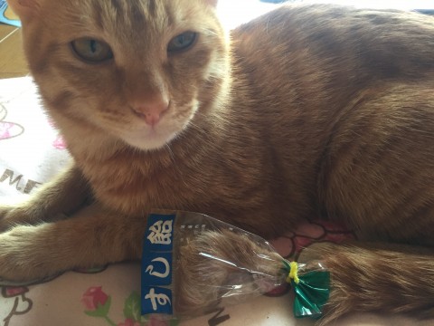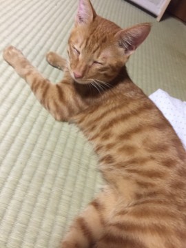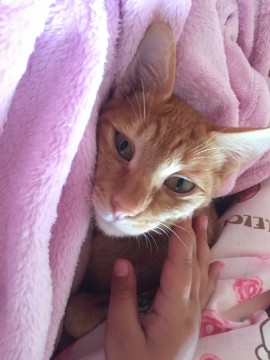 全身オレンジのような色の猫です。鼻、肉球はピンク