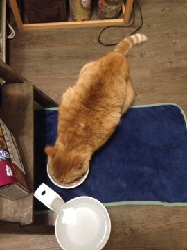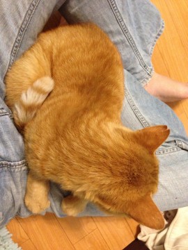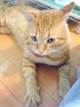 大きめの雄猫で、お腹は白くない全身茶トラです。