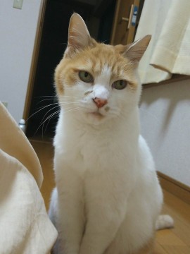 子猫の頃捨てられたらしく、多摩川で風邪をひいていたところを保護しました。