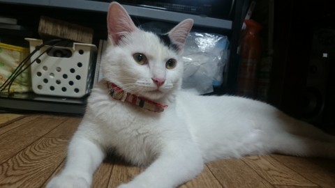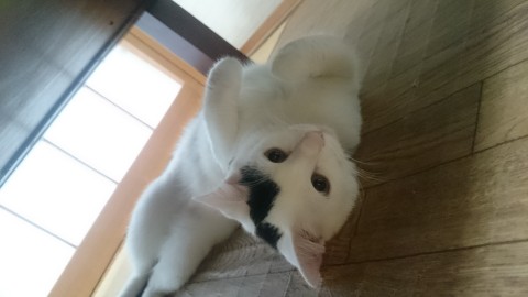 頭は前髪があるような模様と身体は白ですしっぽは黒です