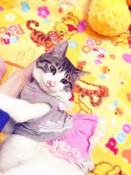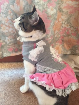写真のように洋服を着ています