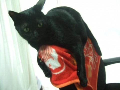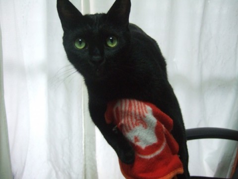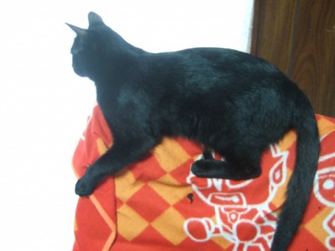 全身黒色短毛シャム系筋肉質でしっかりした体つきです。