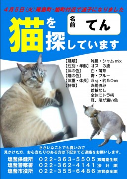 保護していらっしゃる方、見かけた方は、些細なことでも構いませんので、ご連絡お願いします。