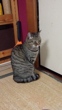 3月25日から帰って来ません。キジトラのメスです。首輪は、していません。口元が白く、尻尾がくの字に曲がっています。