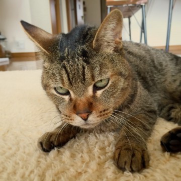 こんなに人に慣れているのだから帰る家があると思い、何度も何度もお外へ出しましたが後をついて戻って来て玄関でずっと鳴いていたのと、ガリガリに痩せていたので保護しました。