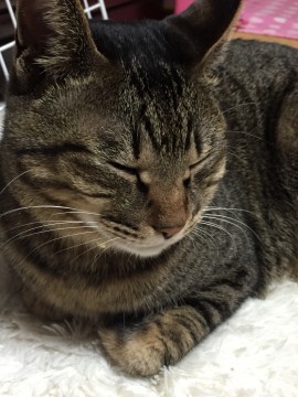 キジトラ柄でしっぽの先がくるんと曲がってます!