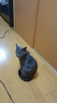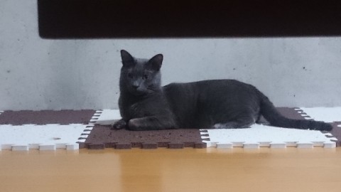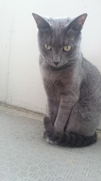 毛の色はグレーで、瞳の色は黄色です。体重は4キロ弱です。