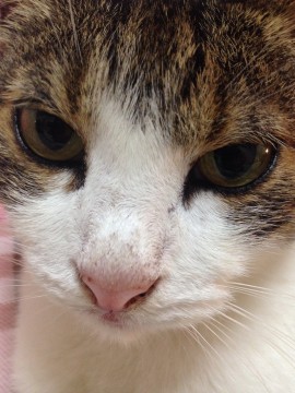 キジトラのメスです。首輪も何も付けていません…病気などもなく健康ですので年齢の割に若く見えます。