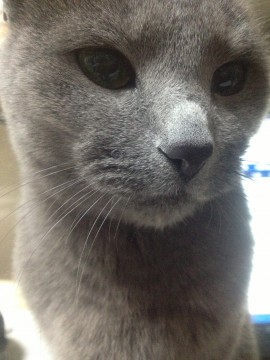 老猫(ロシアンブルー)メス・避妊手術済み・どちらかというとやせ型です。一本だけ白いヒゲが途中で切れています。
