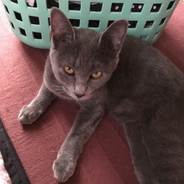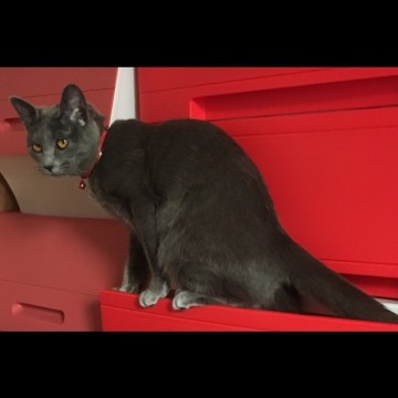 散歩中に逃げ出してしまいました。ロシアンブルー似のmix。赤い首輪を着けています。赤いリードが着いたままかもです。
