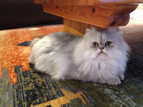 白の長毛猫です。とにかく毛が長くもこもこです。