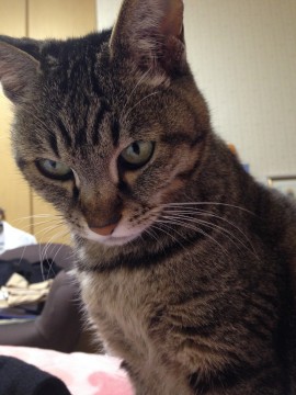 警戒心が強い猫なので、家族以外にはあまり懐いていません
