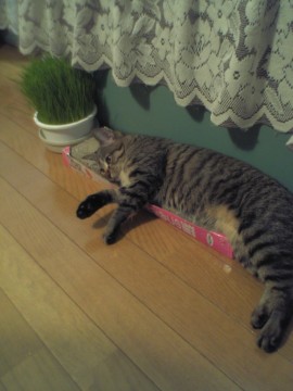 ただ、いつも寝ていたふかふかの猫ベッド(屋根付き)を餌の横に置いておきましたら、中で寝ていたところを保護しました。
