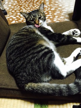 白キジ・首からお腹にかけてが真っ白・シッポがストレート・体重6キロの大きめです