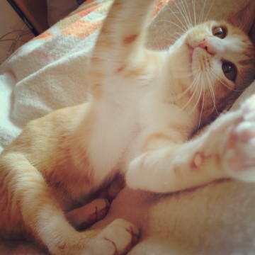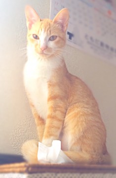 ソラちゃん、と呼ぶとニャーンと返事をします。