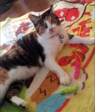 ピンクの首輪に大きさの違う鈴が2個ついてて