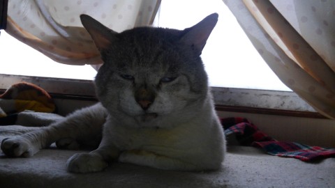しっぽが短い、片方牙がない、左の顔を引きずる、首輪はいなくなったときしていたが、外れてる可能性がある、背中にはげてる部分がある、よく泣きます