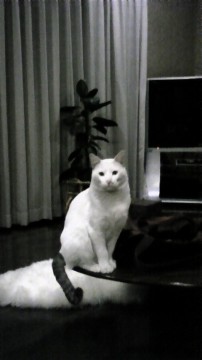 写真の通り、全身が白く、尻尾だけが黒っぽいしましまです。