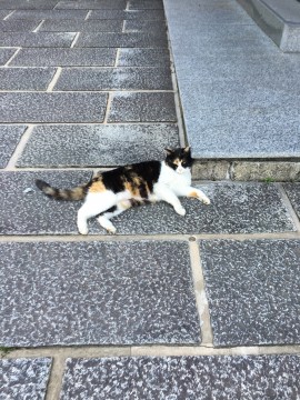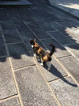 首輪なし、人懐こい、声は高め、尻尾長い、避妊手術済み