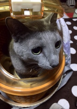 青い首輪に迷子札と鈴をつけています(外れている可能性有)。