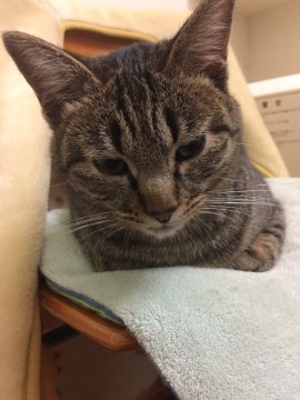 トラ柄で目(黄色と黒)が大きいです。毛並みはツルツルしてます。体の大きさは中ぐらいです。