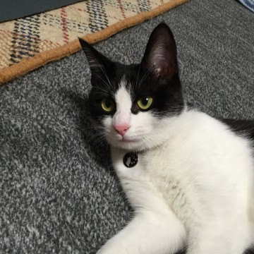 黒と白でハチワレです。