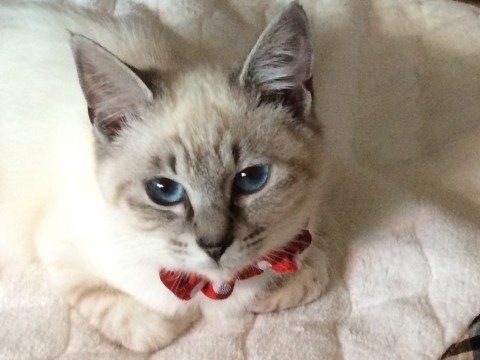 シャムミックス、目はブルーで、光の下でも、黒目が細くなりません。