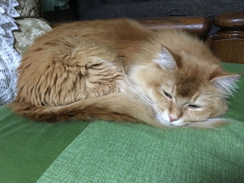 裏口開けたら、帰って来れたと言わんばかりに鳴きながらシッポ嬉しいフリフリで入って来ました(笑) 風が強く雨も降って、匂いも掴めないまま帰れなかったんでしょうね。3泊4日の小さな冒険で帰宅しました。かなり疲れたのかぐっすり寝てます。ありがとうございました(´_ _)