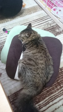 キジトラの長毛です。しっぽが長く、毛がもふもふしています。