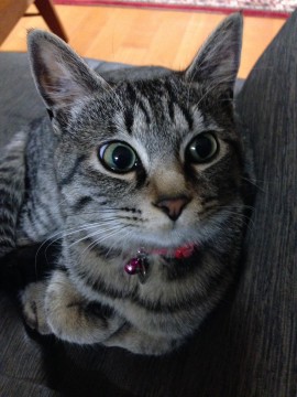 キジトラの避妊済みの女の子です。寝るとき以外は人の近くが好きではありません。