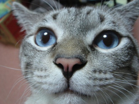約7kgのおデブです。首輪はしていません。背中のあたりはグレー。足としっぽはしっかり縞模様です。後ろ姿はまるで狸です。目はブルー。右手の小指だけ白いです。