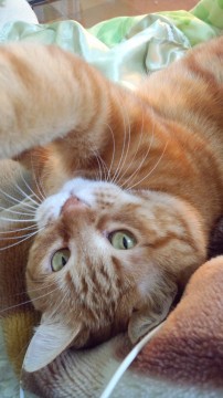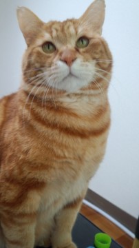 茶色のアメショ模様。去勢済、マイクロチップ登録済。目は薄い緑で、しっぽはまっすぐで長いです。首輪はしていません。体重は6キロほどです。