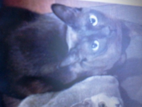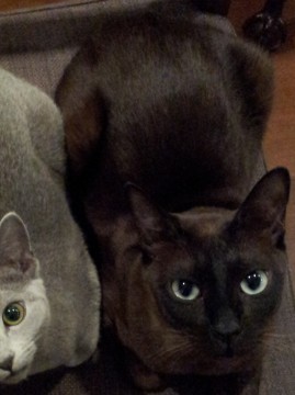 こげ茶色のトンキニーズです。写真の右側の猫ちゃんです。