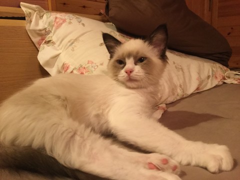 5ヶ月ですが、ラグドールなので、成猫のような大きさにみえます。
