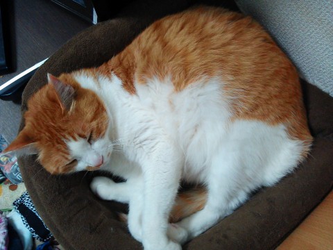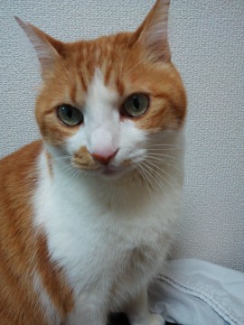 【特 徴】茶白、まっすぐ尻尾、マズルに模様、6.5㎏と大き目、首輪等なし