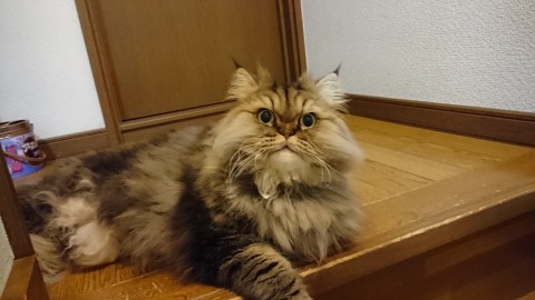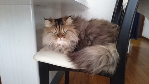 チンチラ 濃い茶色 緑の目 黄色い首輪 去勢済み
