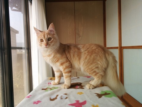 尻尾が太く薄い茶色のトラ模様の品種が「ソマリ」という猫です。