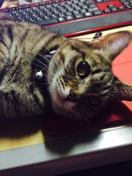 ・その他特徴:小さめで細身/白地に模様が入った首輪/去勢済み