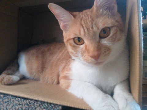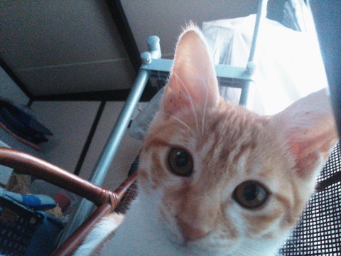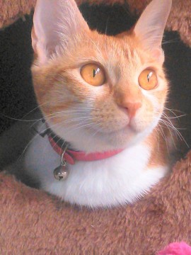 気の強い猫、機嫌が悪いとすぐに噛みつきます。呼んでもまず寄ってきません。音の出るオモチャに興味を示します。空き箱やスーパーのレジ袋に入るのが大好き。