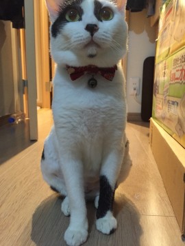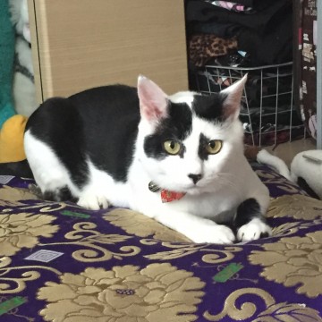 避妊したばかりのでお腹傷口があり。毛を剃ったばかり。ちょっと太いって体重は5キロくらい。赤首輪が付いってる。マイクロチップがあり。