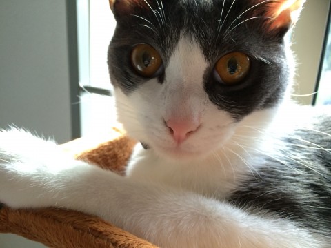 濃い灰色と白のハチワレ