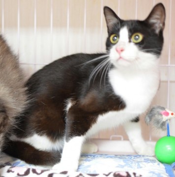ハチワレ、黒比率多い、去勢済み、首輪無し