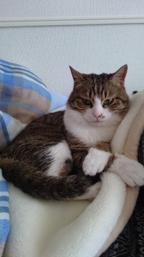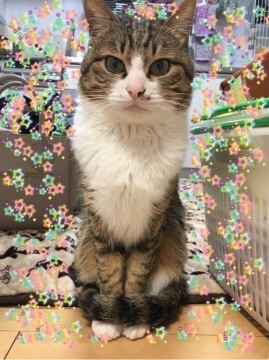 去勢済。首輪はしていません。少し高めの声で鳴きます。写真でも見れますが、鼻の横は少し茶色の毛になっています。