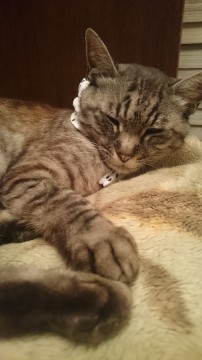 今回は首輪変わりにつけていた豆絞りをつけたままいなくなってしまいました。もしかしたらとれているかもしれません