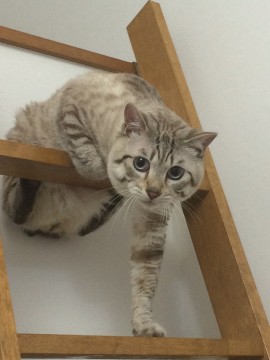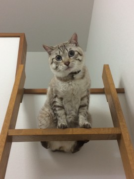 1歳の割には太っており、大きめの体、青い瞳と鍵尻尾が特徴です。