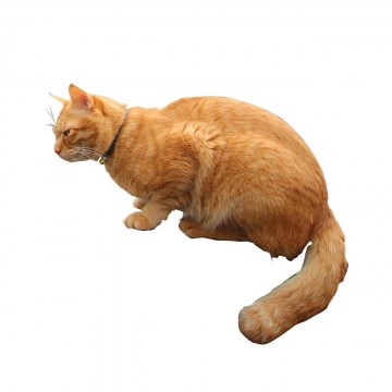 大きめの茶トラです。お腹も含め全身茶色です。最大の特徴は大きく太く長い尻尾です。首輪が外れた状態で脱走したのですが首には首輪をしていた跡があります。