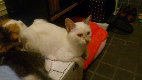 浦安市堀江から22日金曜の夜から行方不明です、全体的に白い毛で耳と背中と尻尾にグレーがかった毛が混ざっています、目は昼間見ると水色です、触ろうとすると怖がりますが、大人しい、人懐っこい猫です、見かけた方はご連絡ください